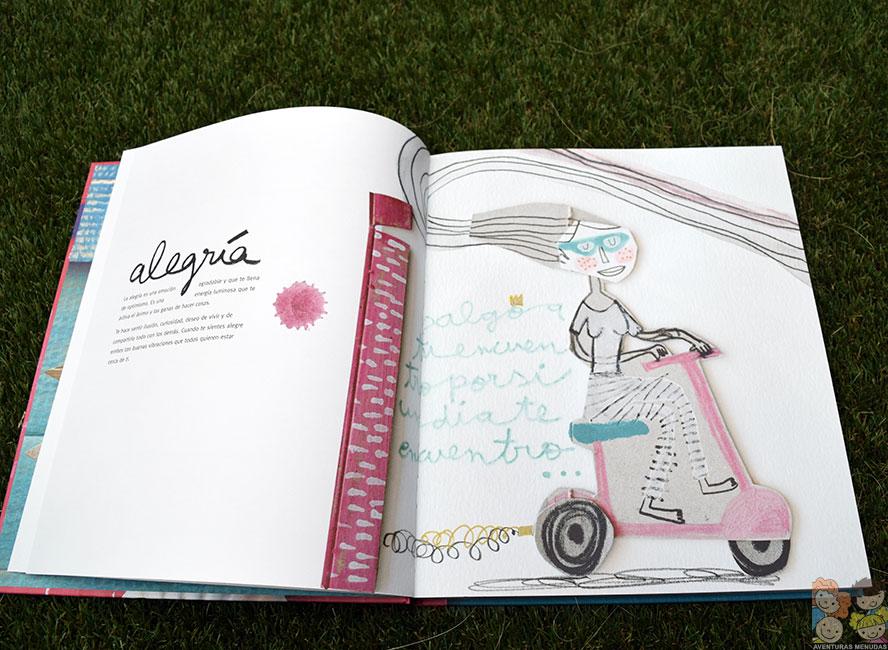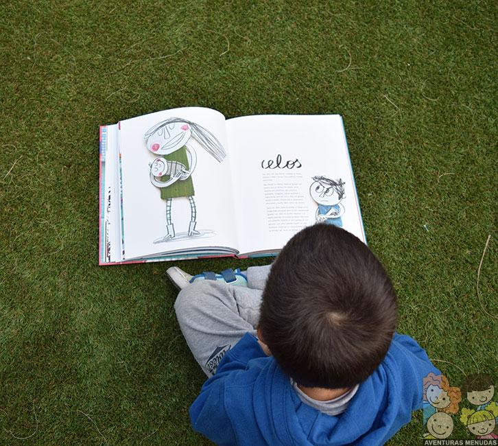 Cuando lo recibimos, mis peques fueron mirando una a una las ilustraciones y me pedían que les leyera qué significaba y qué emoción transmitía. Yo primero les preguntaba, qué les hacía sentir a ellos para ver su interpretación de la imagen y después les leía la explicación dada por Anna Llenas de esa emoción. Increíble respuesta en algunas de ellas.