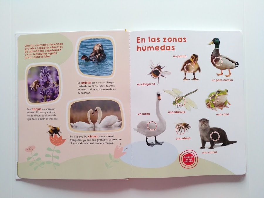 Un libro para descubrir el fascinante mundo de los bosques, el mar, las zonas húmedas... y una algunas características sobre cómo son o cómo viven algunos de estos animales en sus hábitats. Incluye coloridas ilustraciones reales sobre fondo blanco y sonidos reales.