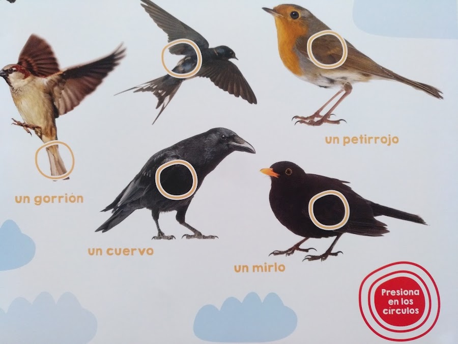 Podemos utilizar las imágenes de los animales para pedir a los peques que nos digan el nombre de cada uno de ellos y que sonido hacen. Podrán comprobar por si mismos si han acertado pulsado el botón.