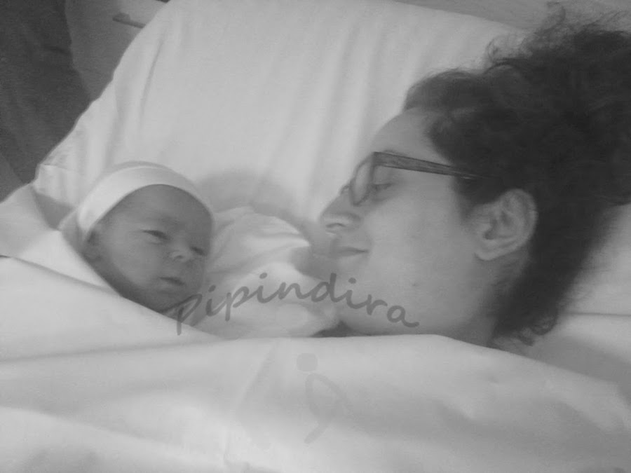 Una vez en la sala me dice que si me quiero dar una ducha, que la nueva sala de partos , que es enorme, dispone de aseo individual con ducha, que me vendría bien para relajarme. Le dije que no, quería ponerme ya manos a la obra jajajaja, que ya me había duchado en la habitación. Estuvo todo el tiempo hablándome, contándome su vida como si no estuviera de parto vaya pero eso me ayudó mucho a relajarme. No estaba tan centrada en el parto sino en lo que me contaba y me vino de lujo. Me puso la vía y los aparatos para el monitor, esos para controlar contracciones y frecuencia cardiaca del bebé. Y me puso la oxitocina. Llegó la ginecóloga, se presentó y me preguntó si me habían puesto el "tampón" el día anterior. Le dije que no, yo no sabía ni que era eso. También me preguntó si desde las 9,00 del día anterior me había visto alguien y a lo que le contesté que no. Se enfadó y salió. La escuché hablando en el pasillo con una compañera. De las 3 que estábamos para provocar el parto desde el día anterior sólo a mí se les había pasado ponerme el tampón ese para ayudarme a desencadenar el parto. Y protestaba también porque nadie me había visto en tantas horas. Volvió a entrar y habló conmigo tranquilamente. Me dijo que bueno que no pasaba nada, que estaba todo bien y que no me preocupase y iba a salir todo muy bien. Se fue y me dejó sola con la matrona. Mercedes, me dijo que me iba a romper la bolsa para acelerar el parto. Me la rompió y salió muchisima agua. "¡Pero cuántos litros de agua hay ahí si llevo desde ayer empapando compresas?" le pregunté.