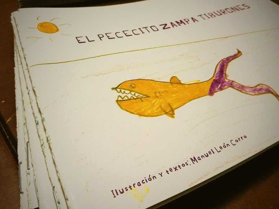 Nos dijo, me gustaría escribir un cuento y regalarlo en mi cumple a mis amigos. Sin pensarlo dos veces cogió libreta y lápiz, y comenzó a escribir su historia. Cuando acabó, saco sus colores e hizo las ilustraciones del mismo.