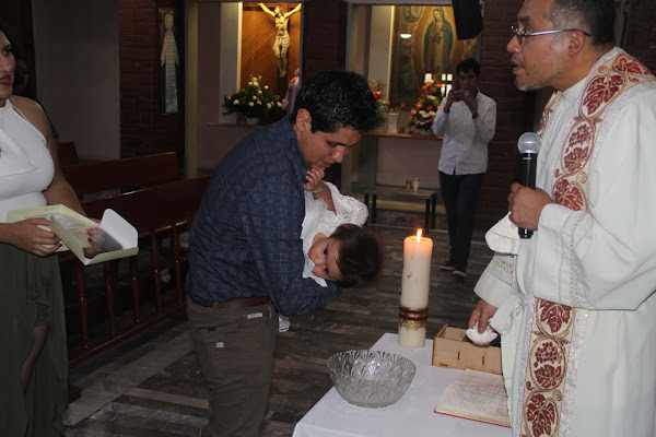 El bautizo dio inició a las dos de la tarde y me pareció una ceremonia breve y bonita. Isabel se comporto de maravilla, paso buena parte durmiendo y cuando llegó el momento de que la bañaran con agua bendita no lloró, al contrario, parecia que le agradaba.