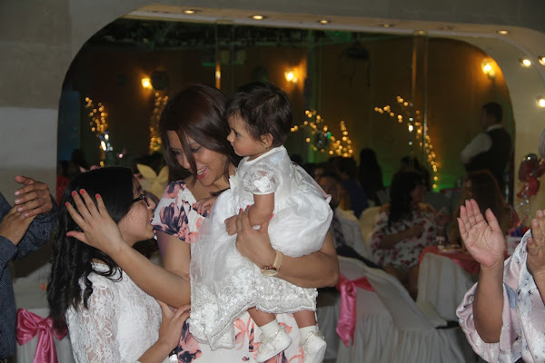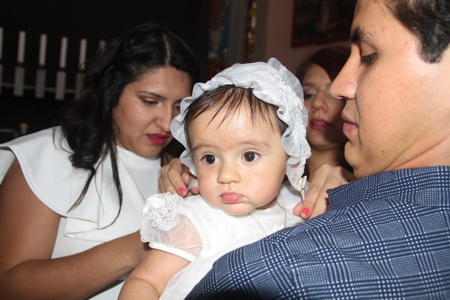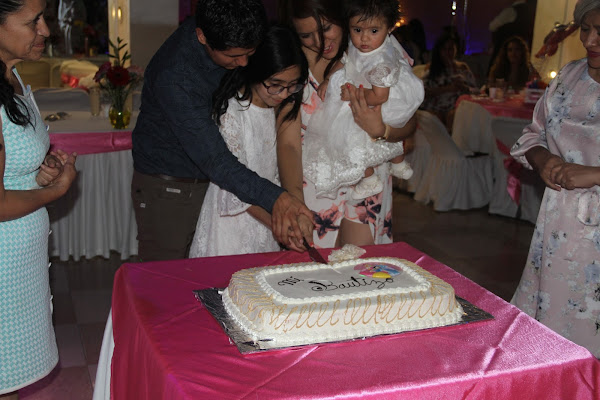 Se les ocurrió pedir que diéramos unas palabras y sólo pude dar gracias por haber estado con nosotros después de dejar atrás un año tan difícil. Al tiempo que hablaba se me quebraba la voz, y unas lagrimas de felicidad escurrían por mis mejillas. Tenía a mi gordita en los brazos y me llenaba de dicha festejar su primer año, luego de una llegada tan incierta, de momentos tan tormentosos, de escuchar muchas veces que ella tenía pocas posiblidades de sobrevivir, después de escuchar que estaba en estado de gravedad y deprimida, después de no poder cargarla, besarla o abrazarla los primeros días de su vida. Y ahora puedo comermela a besos todos los días, y estábamos ahí, estallando de alegría, brindando por su vida y presentándola ante Dios como hija suya.