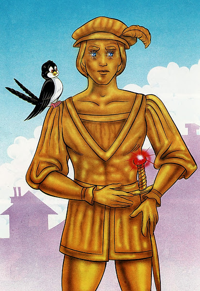 El Príncipe le pide que le arranque láminas de oro que recubrían su estatua para dárselas a esos niños.