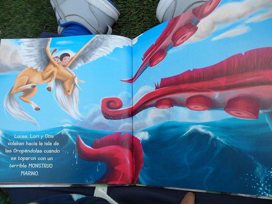 En el Bosque Púrpura encontraron a Otis y se ofrecieron a ayudarle a buscar a su familia. En su camino hacia la Isla de las Oropéndolas, les sorprendió un monstruo marino, que cogió a Otis. En este punto, mis peques estaban con los ojos como platos y con un poco de preocupación en sus rostros…jejejeje.