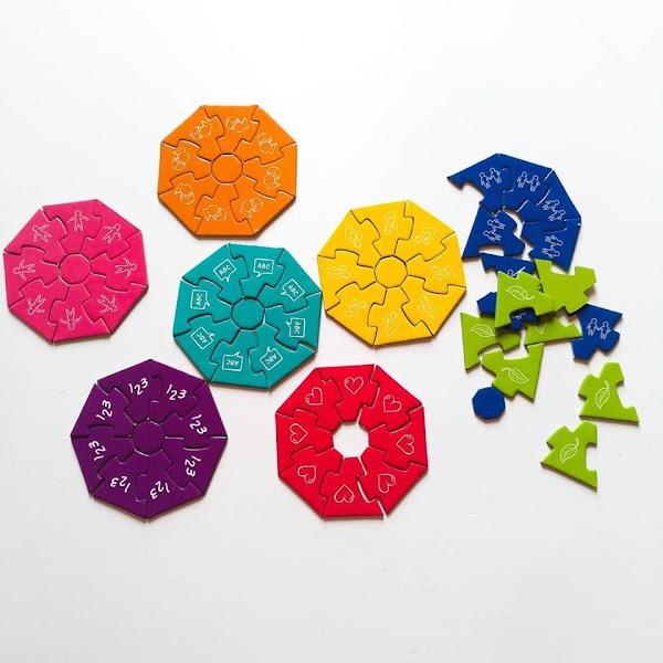 64 piezas puzle que forman 8 octógonos (uno de cada inteligencia).Y se presenta en un práctico maletín de almacenamiento, con una práctica asa para transportar.