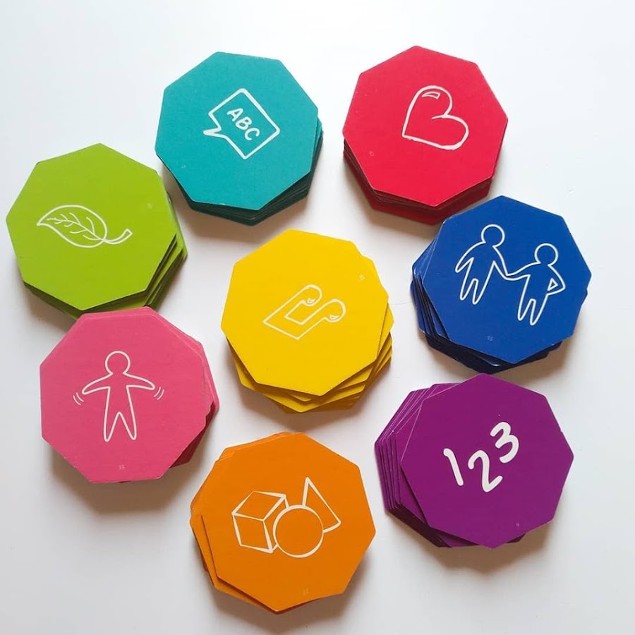 Se trata de un juego de razonamiento muy divertido que permite desarrollar el autoconocimiento. Y a su vez se convierte en un juego-herramienta estupendo para trabajar múltiples conceptos de forma lúdica (individualmente, en parejas o en grupos).