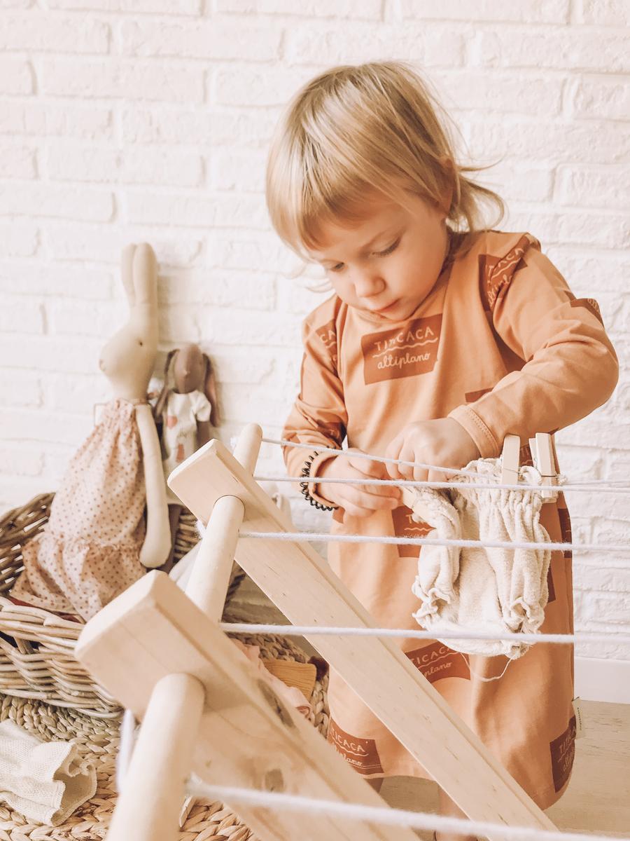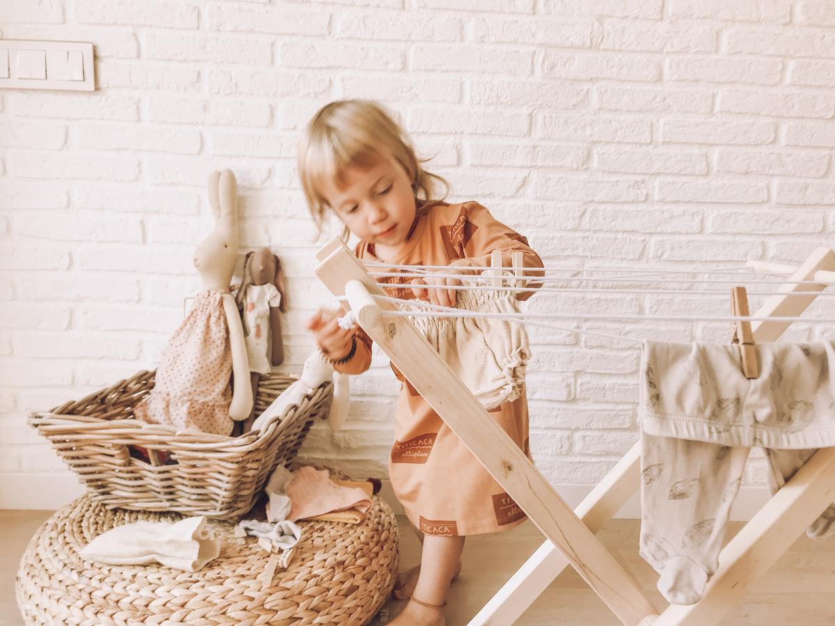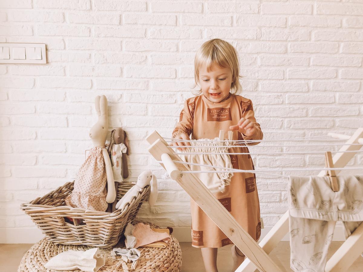 Hoy os he preparado un post para hablar un poquito del juego simbólico a raíz del furor que provocó el tendedero de madera de Valentina. Y sí, la verdad es que no le quiero sacar mérito porque es precioso y a mi me ha servido para hacer alguna foto de bodegón como la que os colgué en Instagram con la ropita de Julieta. Pero el caso es que elementos como estos forman parte del gran mundo del juego simbólico y hoy a parte del post prometido también quería escribir cuatro lineas sobre él.