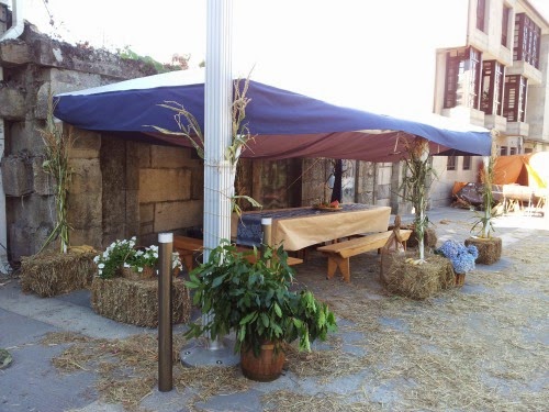 Lo más llamativo y distintivo de otras fiestas de este estilo, son las comidas. Se come en la calle, no sólo en los restaurantes y bares de la zona, sino que quien quiera montar una mesa, sólo tiene que solicitar permiso y puede hacerlo. Eso sí, tienes que cumplir una serie de requisitos, porque ¡no puede haber nada moderno! De verdad que hay mesas impresionantes, mucha gente se lo curra muchísimo. Y esto es lo mejor, estás en tu mesa, comes, sobremesas larguísimas, vas de paseo de mesa en mesa de conocidos, que si un licor café, que si una cremita...