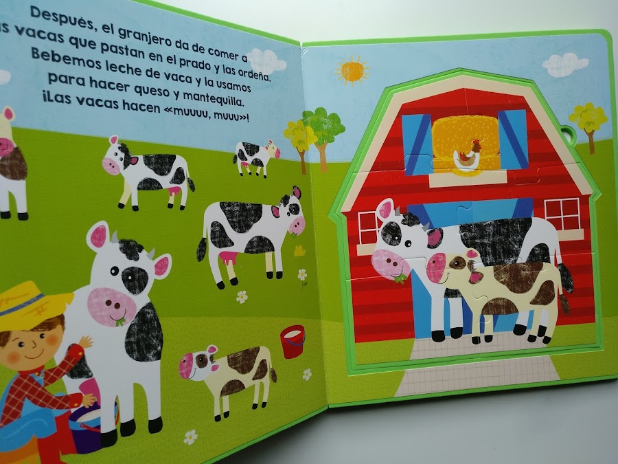 En definitiva, un libro-juego a través del que los más pequeños aprenden con imágenes, con la lógica de montar un puzzle y con el reconocimiento e identificación de animales de granja. Una forma diferente, lúdica y original de favorecer el gusto por la lectura de los peques y una fantástica alternativa a los libros de solapas.