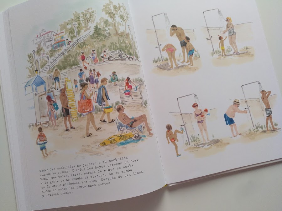 Personalmente, me ha encantado este libro. Es como si a través de él hubiera un agujerito que te muestra todo lo que los adultos y los niños hacen en la playa: tomar el sol, pasear por la orilla, jugar en la arena... Un libro que te muestra, te ayuda a descubrir, a seguir preguntando, a seguir indagando.