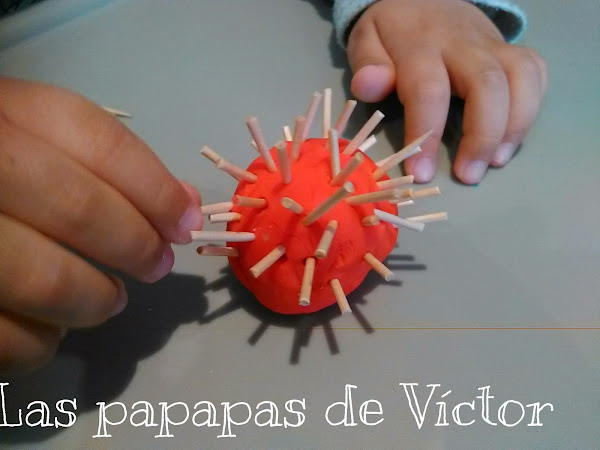 Con ayuda de un mayor cortar los palillos en tres o cuatro trozos e irlos introduciendo dentro de la bola