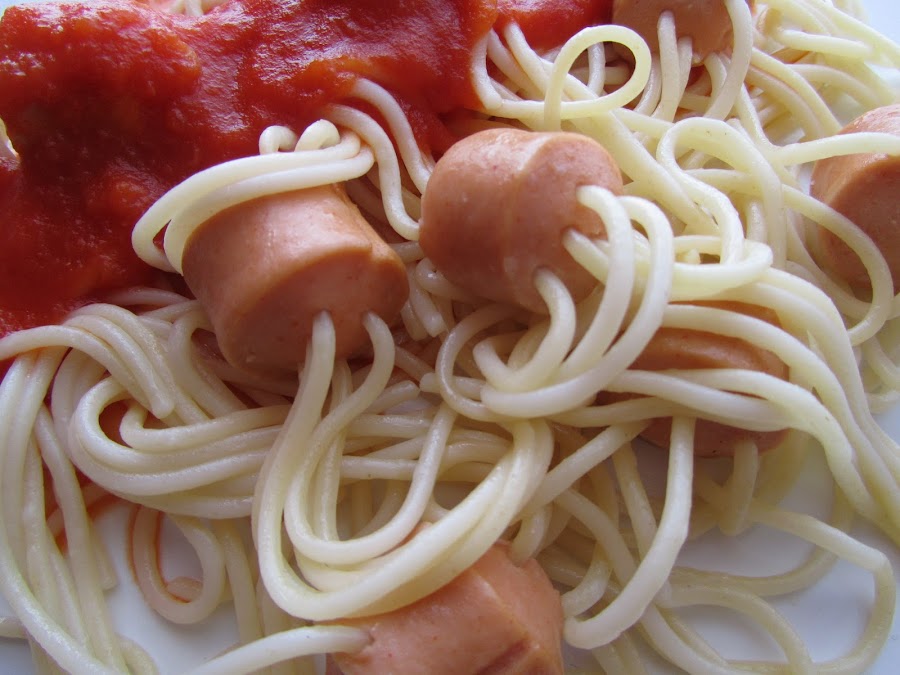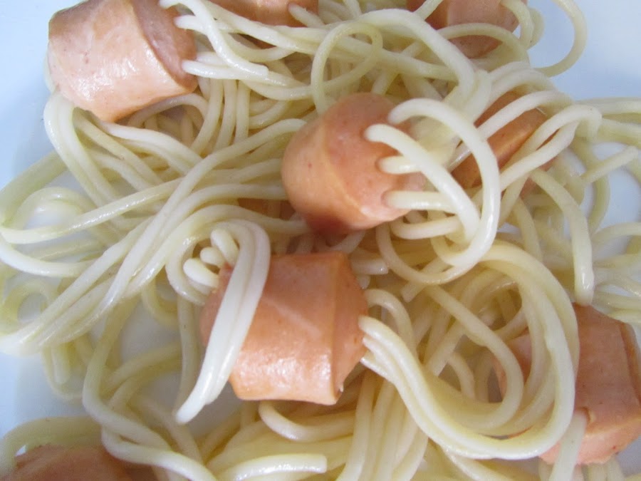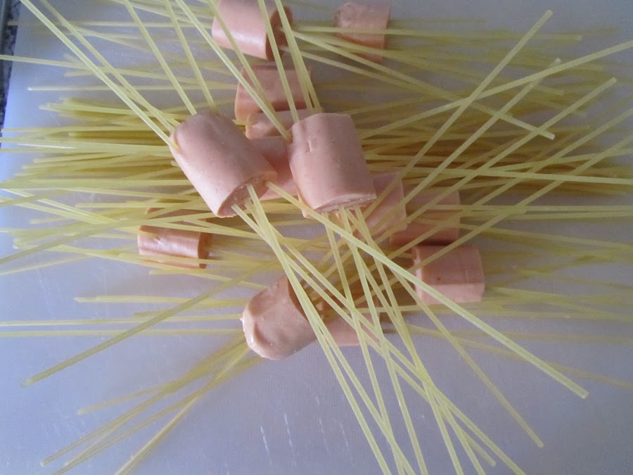 Los espaguetis pasan por dentro de las salchichas!!!