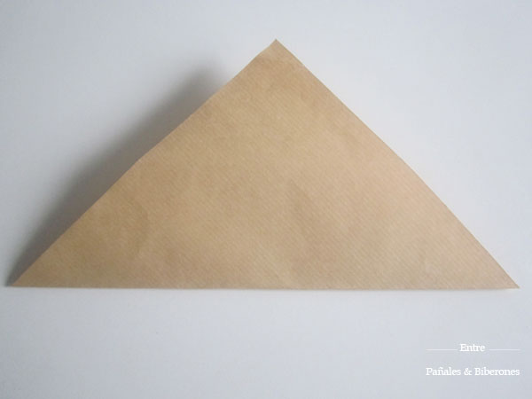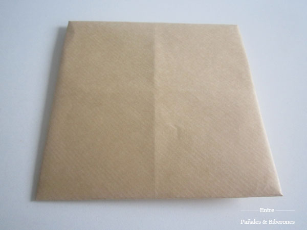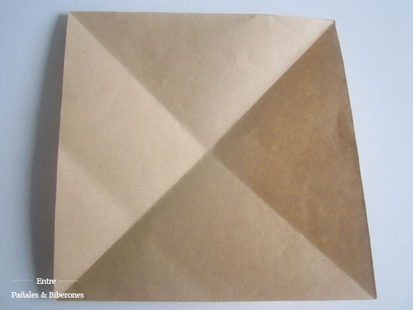 A continuación lo doblamos de una esquina a otra, para marcar así el punto central del papel y tomarlo como referencia.