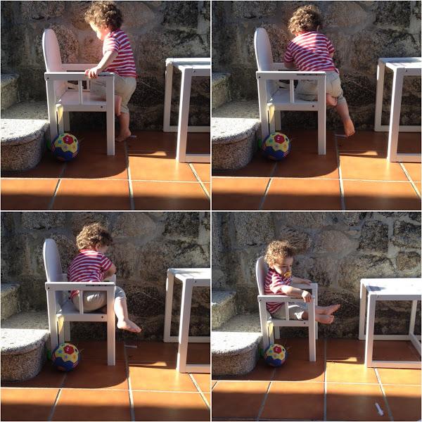 Mis peques en este momento están en esa fase en la que todo, lo abren y lo cierran 10.256.789 veces, guardan y sacan juguetes, pero no menos importante, suben y bajan de todo lo que se encuentran. Y esta actividad, realmente es muy importante, el enseñar a tu bebe a sentarse en su sillita no solo es una actividad educativa; con ella practica la flexión de las piernas y el movimiento de las caderas. El estar sentado le obliga a erguirse y a corregirse posturalmente.
