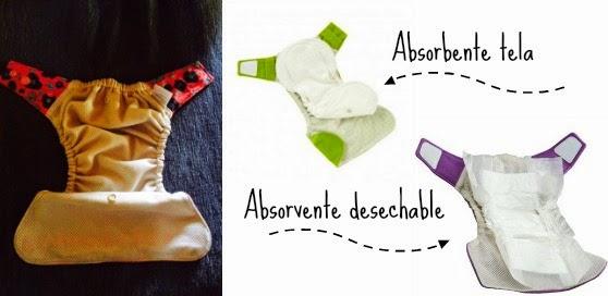 Absorbente desechable: en cada cambio se tira el absorbente a la papelera ( no es biodegradable) y se reutiliza el cobertor poniendo otro absorbente desechable.