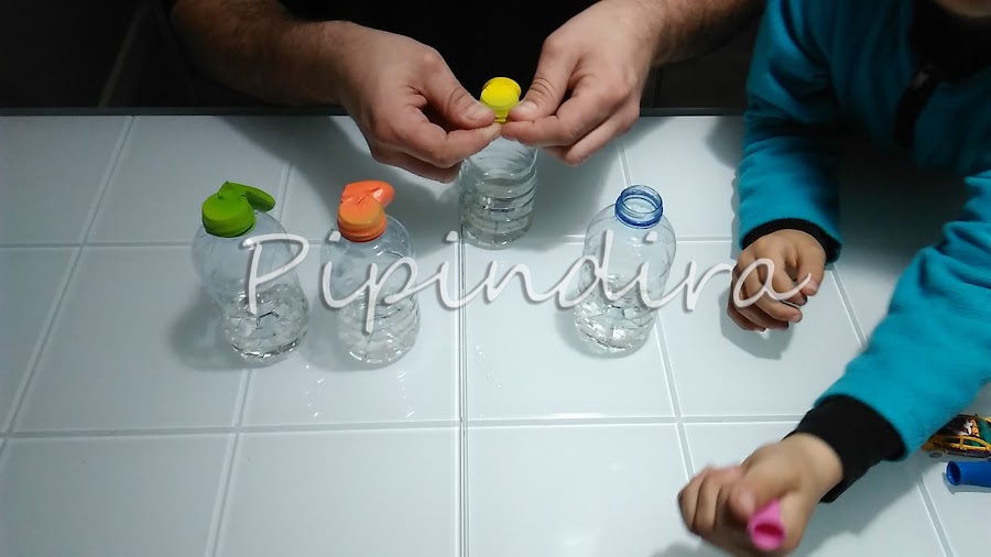 Os aconsejo que compréis botellas un poco más altas para poder meterle más cantidad y que se llenen más. Nosotros teníamos estas pequeñitas por aquí.