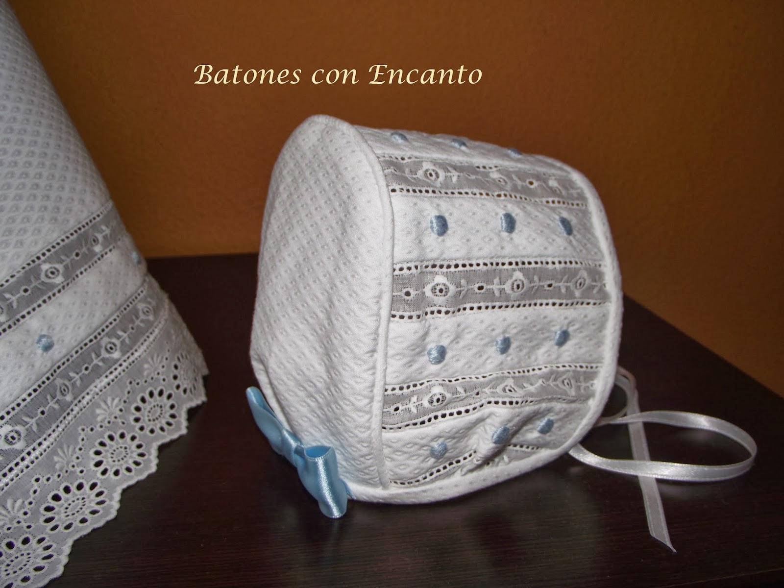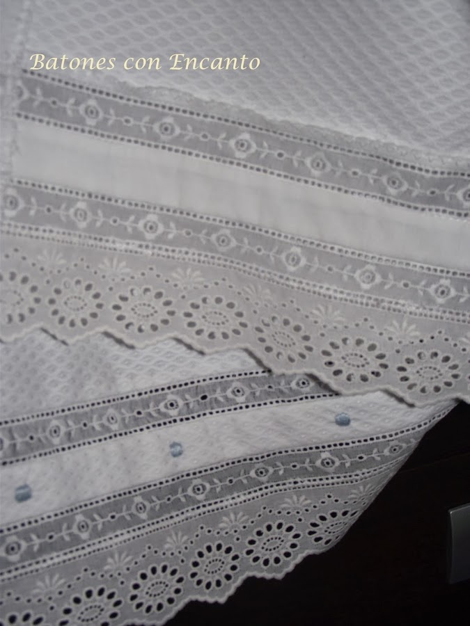 Esta noche os dejo en mi blog un nuevo Faldón en tela de piqué blanca con entredóses y bodoques bordados a mano, en tono celeste. Este está disponible.