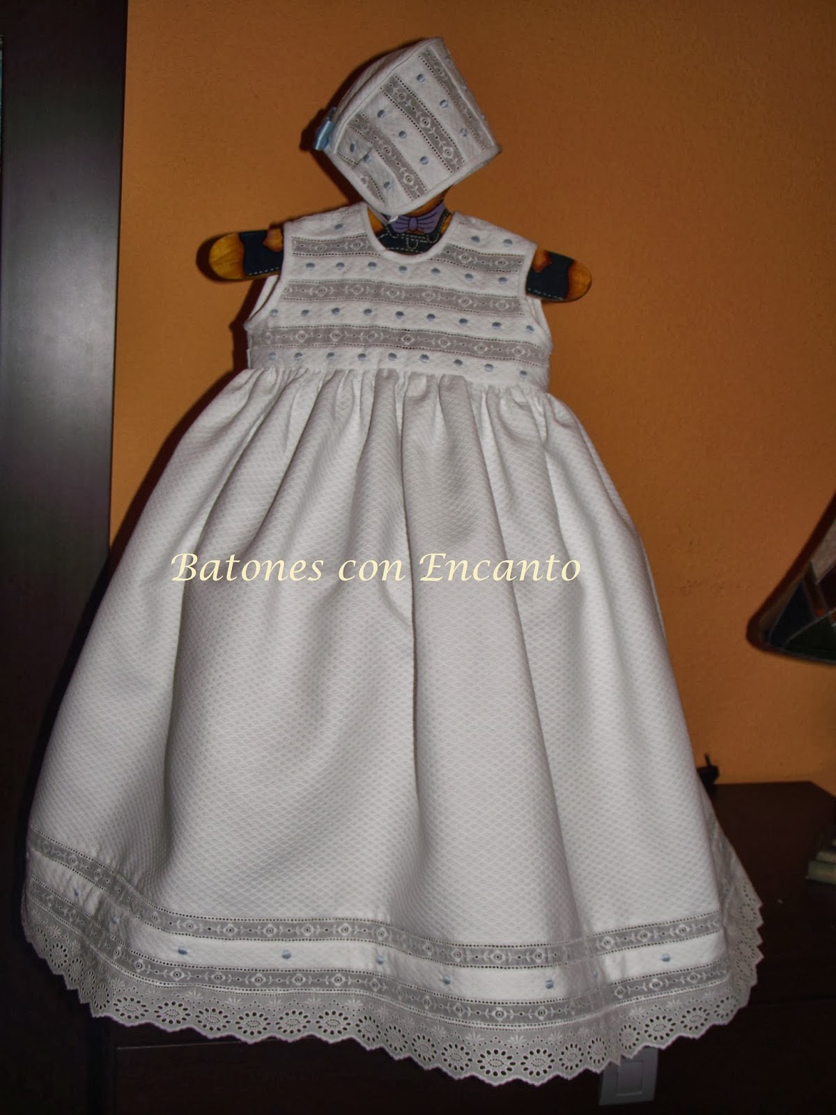 Buenas noches...hoy os quiero enseñar un nuevo batón que está recién terminado y me ha gustado mucho como ha quedado,ya me contareis que os parece!!! Esta hecho en semi-hilo celeste con encajes y entredóses en color beige y unos panetes en el cuerpecito bordados a mano. El forro también se lo he puesto en celeste en una batista y un pequeño encaje por los filos. Muchas gracias a todos p ...