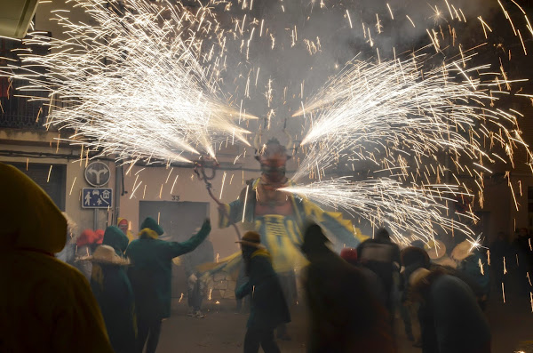 Nosotros hemos participado, como cada año en las principales actividades del fin de semana: Por un lado el Correfoc, del que os dejo unas fotos. Este año, como novedad, y tras finalizar el recorrido pos las calles del pueblo, hubo un piromusical.