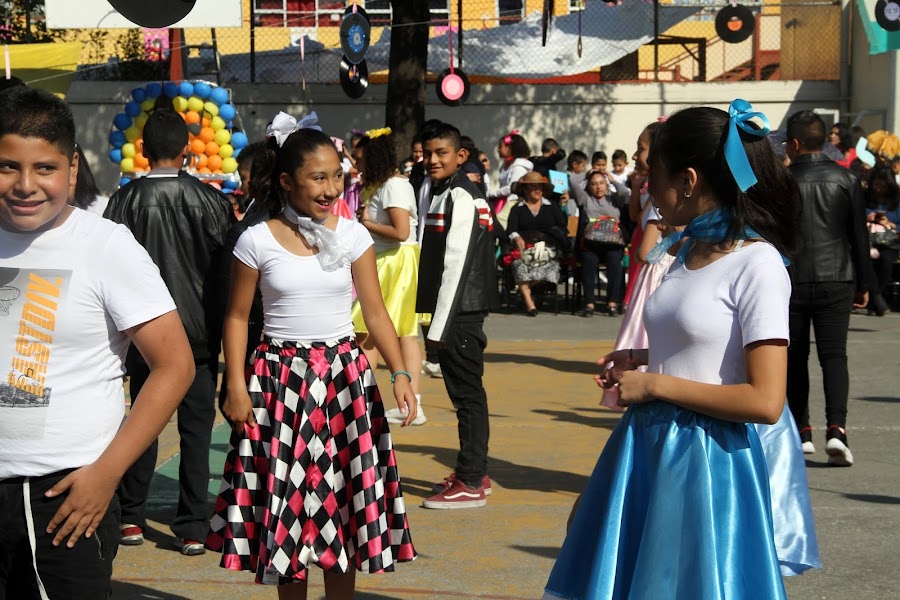 Todos los grupos, desde primero hasta sexto, fueron vestidos en torno a la misma temática. Los profesores y directivos también fueron vestidos de acuerdo al tema. Colgaron por doquier discos de acetato y malteadas gigantes además de que había una rockola de globos. Había palomitas, refresco y helado para las mamás.