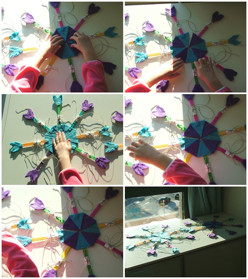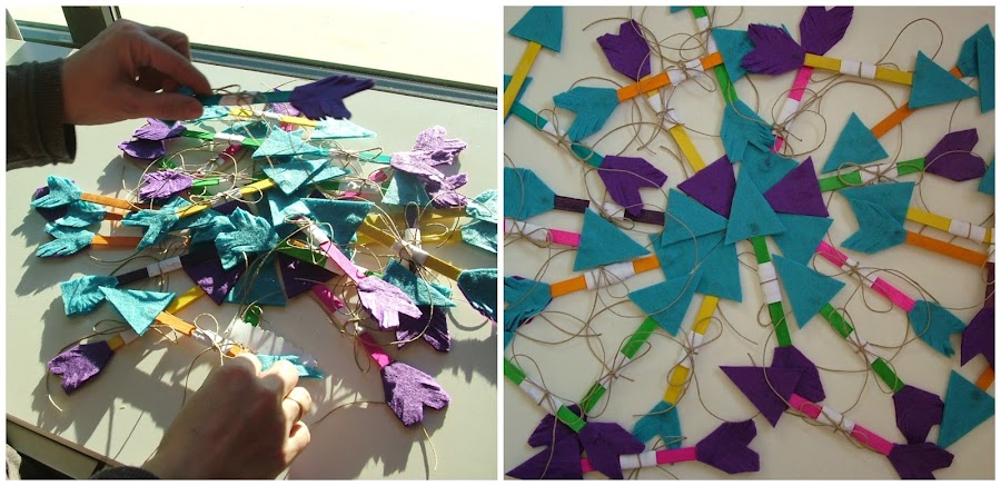 Muy, pero que muy novedoso no es, pero la verdad es que se las han quedado de recuerdo y, como ya es costumbre, la Peque Grande y la Mendalerenda lo pasamos genial recortando y pegando el fieltro. Además, luego nos liamos a hacer fotos y fue genial:
