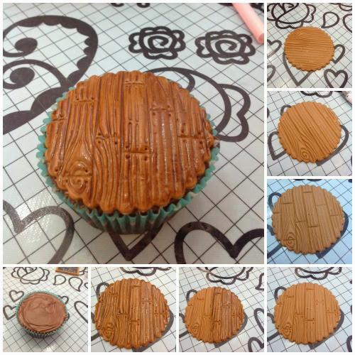 Cogemos la placa texturizadora de madera y la aplicamos, presionando suavemente, encima de nuestro fondant. (Si no tenemos la placa, haremos rayitas con el cutter sin llegar a cortar del todo).