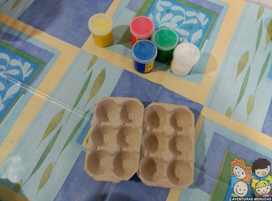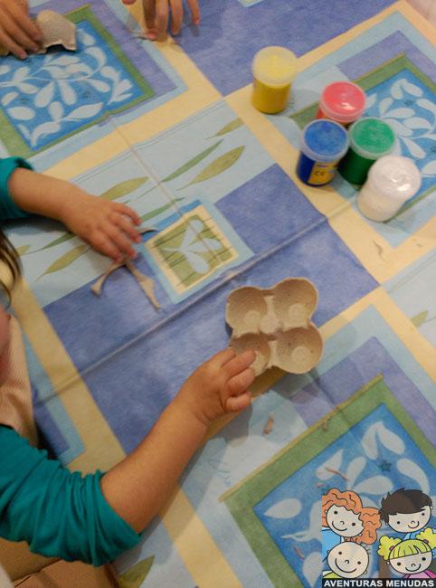 Lo primero es cortar cuatro huecos de la huevera de cartón, de manera que quede cuadrada.