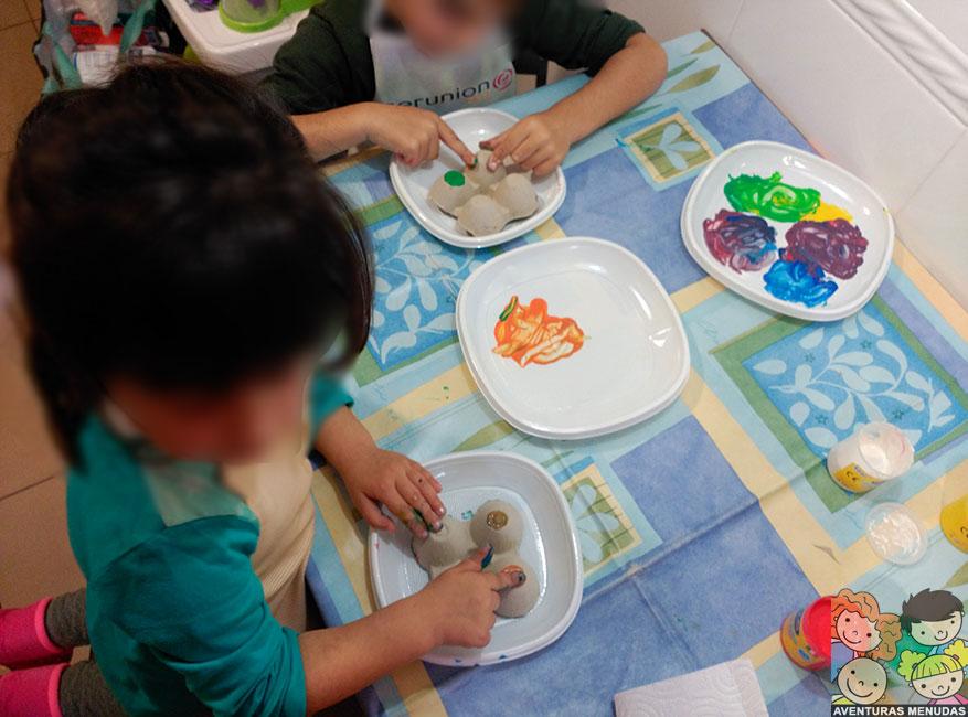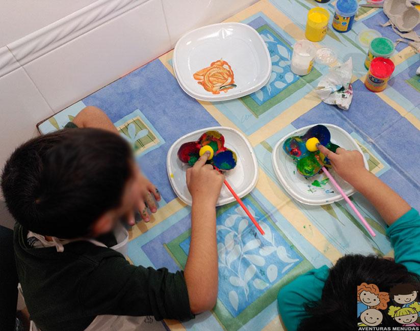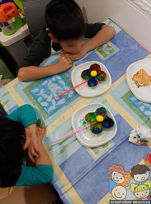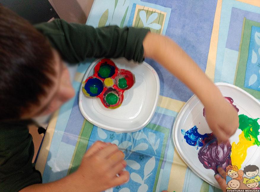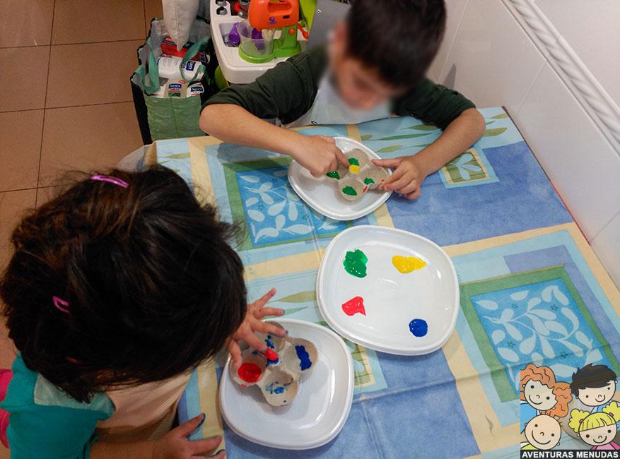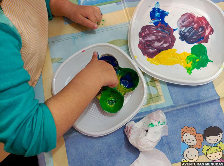 Pueden pintar por dentro de los huecos, por fuera y sobre todo, mezclar colores. Anda que no les gusta combinar colores y experimentar y ver qué sale.