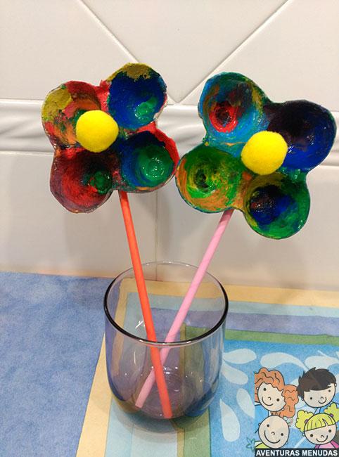 También pueden pintar por la parte de fuera, dándole la vuelta a la huevera, de manera que la flor quede decorada por delante y por detrás.