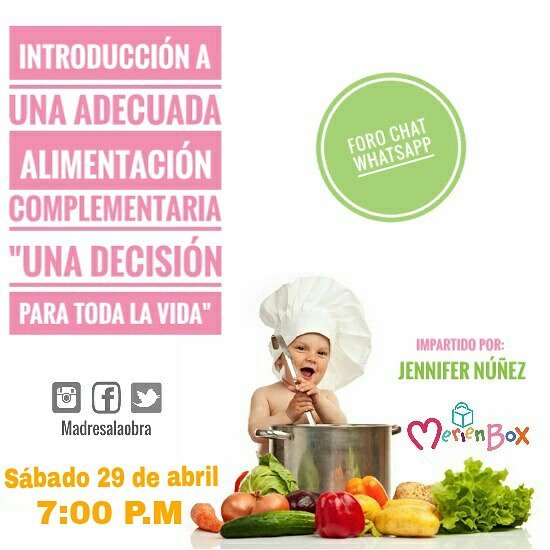 En este Forochat aprenderemos con Jennifer Núñez tips para iniciar la Alimentación Complementaria en nuestros bebés, a partir de los 6 meses de edad. Más información en info@madresalaobra.com.do