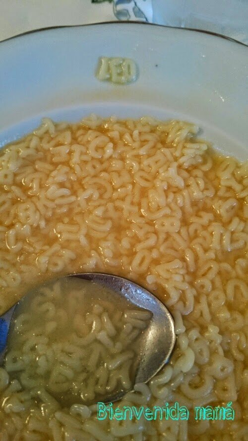 Este fin de semana, como el resto de la semana ha sido caótico, sin tiempo para nada. Entre trabajar, es lo que tiene el comercio que ni los fines de semana descansas, y los regalos, no me da para más. Además fue el cumpleaños de la abuela de leoncito, mi madre, así que también hubo comida familiar. La foto que he elegido ha sido esta de la sopa. Es que hacía un montón de tiempo que no tomaba la sopa de letras, y me ha hecho volver a la niñez cuando buscábamos palabras!! ¿A ti no te encantaba buscar tu nombre?