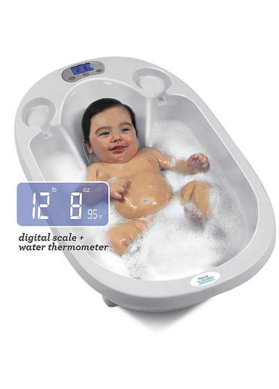 En el número 3 de cosas rarunas, la bañera que te dice la temperatura del agua mientras te pesa y te mide al niñ@. Que adelantos, oiga. Ignorese la pinta de muñeco del niño: