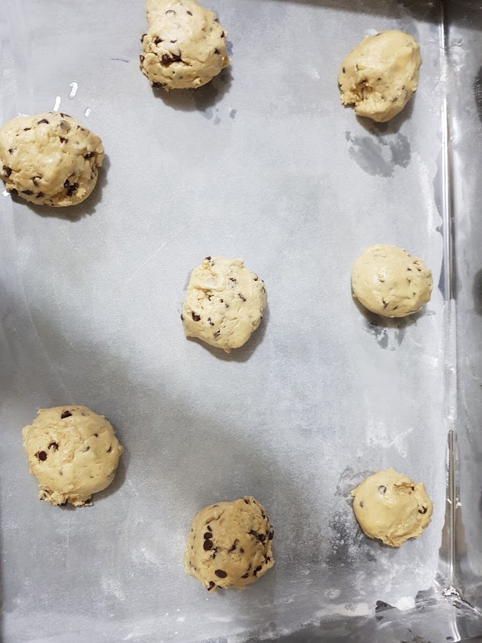 4. Hacer bolitas del mismo tamaño y ponerlas en un bowl para llevarlas a la refrigeradora por aprox. 30 a 40 min. Por último las ponemos en una placa enharinada y enmantequillada. Colocamos 6 bolitas por placas bien separadas. El horno debe estar precalentado a 170° y hornear de 10 a 15 min.