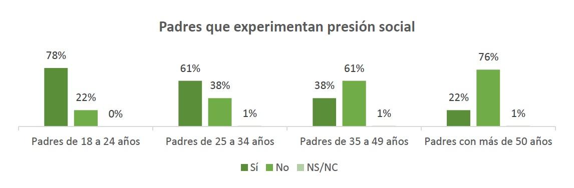 Las cifras son aún más alarmantes en el caso español, donde prácticamente ocho de cada diez padres con edades comprendidas entre los 18 y 24 años aseguran haber experimentado presión
