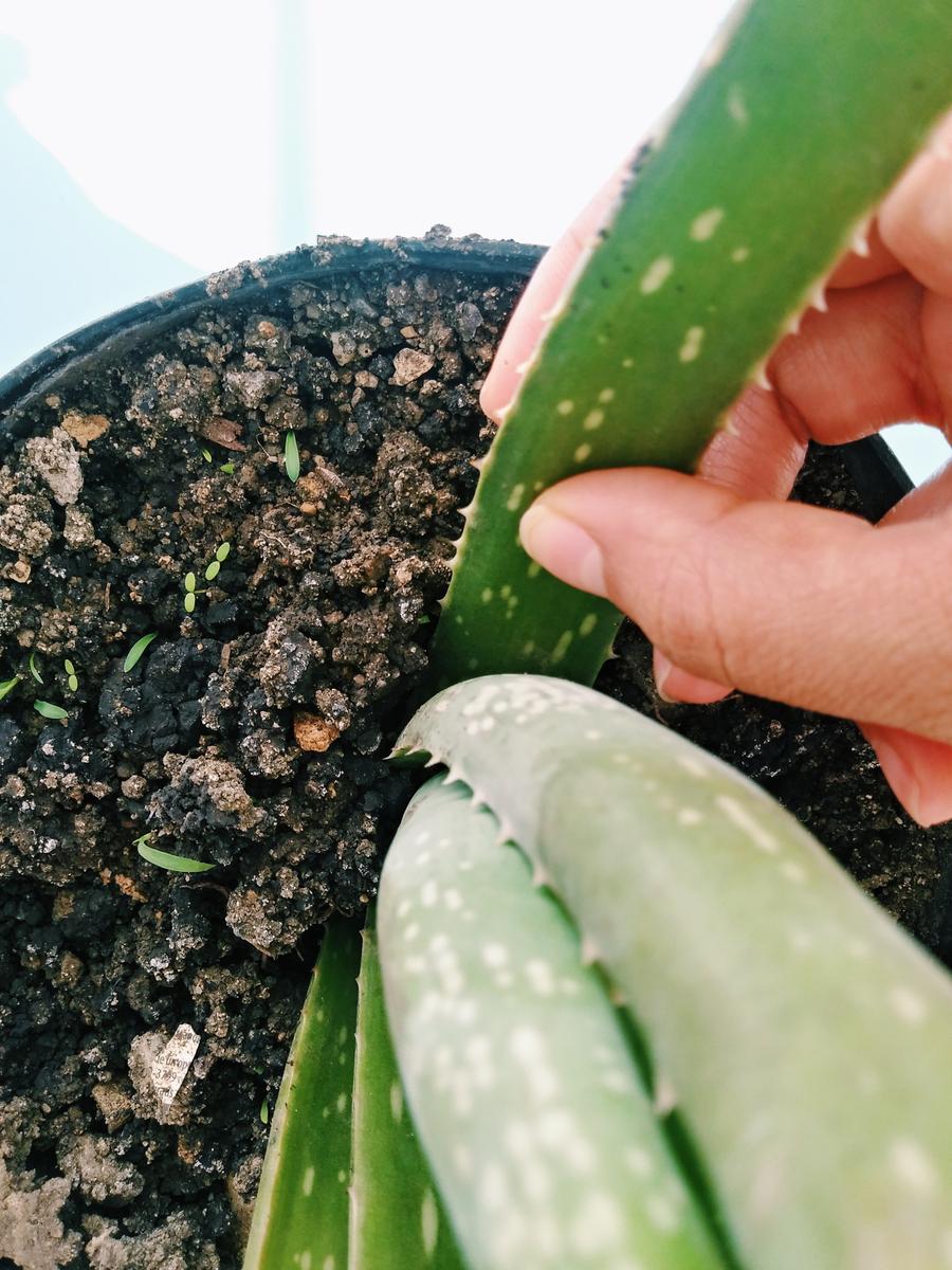 Pedir permiso a la planta de Sábila (aloe vera) para cortar sus hojas, cortar y agradecer.