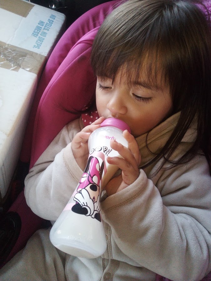 Probamos varias marcas, y nos costo trabajo encontrar la ideal, porque parecía que a Isabel le costaba trabajo adaptarse al biberón, pues a diferencia del pecho, en la mamila no tenia que succionar y la leche caía por sí sola, esta se le escurría en exceso por los bordes de la boca y terminaba empapada del cuello y el pecho. A pesar de que todos los biberones eran para recién nacidos y el flujo era moderado, nos encontrábamos con el mismo problema, hasta que probamos con Dr´ Browns. Esta fue nuestra primer mamila favorita, pues resolvió nuestro problema.