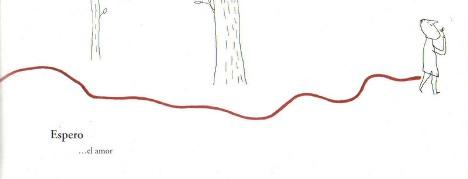 Además de hablar tranquilamente sobre lo que le ha ocurrido a este familiar he aprovechado un libro que tenía en casa desde mi primer año viviendo en Talavera, y que ahora me ha resultado un recurso muy útil para explicar este proceso. Se trata del libro “El hilo de la vida”. Es un libro aparentemente muy sencillo y minimalista, donde el hilo conductor de la historia es un hilo de lana roja, que une todos los momentos importantes y especiales de nuestra vida, desde un sencillo beso antes de dormir hasta la propia muerte. Este hilo nos lleva por las diferentes etapas de la vida y por tanto, transmite un montón de emociones distintas desde le alegría, sorpresa, hast ala tristeza.