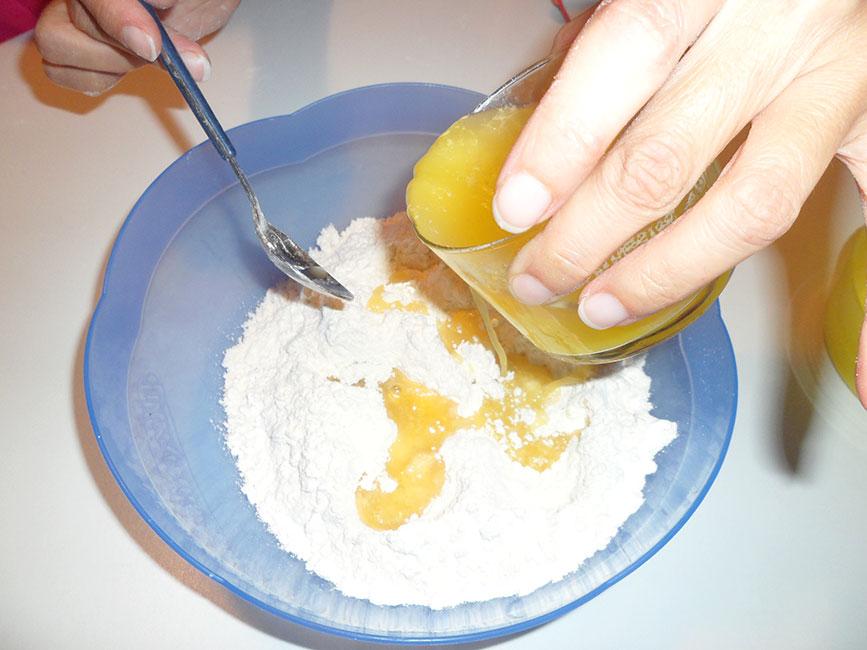 Cuando estuvo derretida la margarina, la incorporamos a la mezcla de ingredientes.
