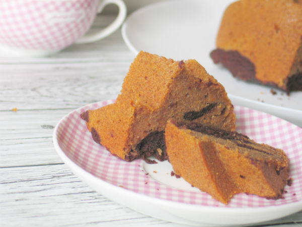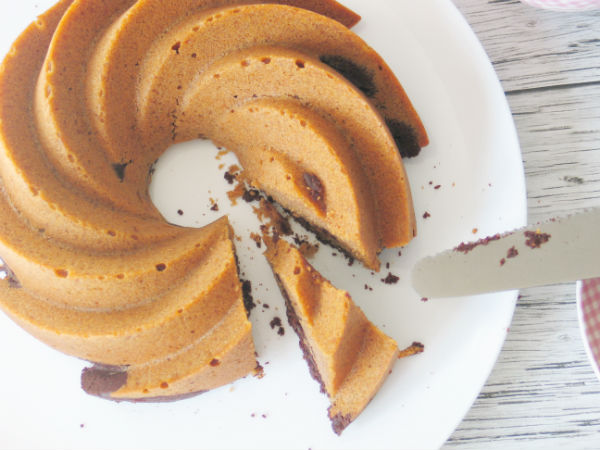 Y diréis: "En la foto veo zonas del bundt cake que son de chocolate". Para conseguir esto, vamos a retirar un tercio de la masa a otro bol y ahí vamos a incorporar el chocolate. Luego es cuestión de hacer una base en el molde con la masa sencilla y sobre ella, ir repartiendo cucharadas de la masa chocolateada. Así obtendremos un bizcocho con dos sabores.