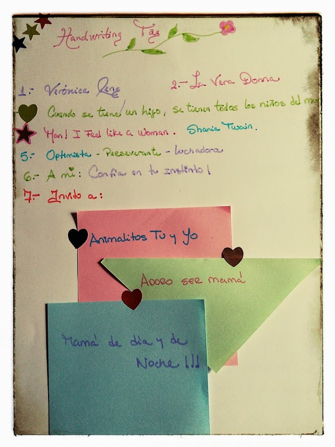 Y ahora os dejo mis repuestas, con colaboración de mi peque y todo (en realidad colaboró como en cinco mas, pero este es el que quedó menos rayado y mas decente, jejeje) mi letra no es lo que se diga bonita, siempre fui un poco vaga para escribir a mano, o eso recuerda insistentemente mi madre. Al final, en el punto 7, mis propuestas para esta actividad tan chula: