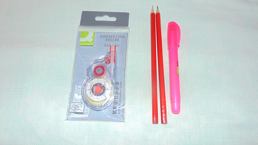 En cuanto a material escolar para el estuche en la gran mayoría esto servida para mucho tiempo pero hay varias cosas que nunca sobran en mi estuche y que incluso me gusta tener de recambio (el famoso "por si acaso"): lápices de gráfito marca Q-Connect 0,16 la unidad IVA incluido; marcador (o subrayador) de cera gel marca Liderpapel rosa con este repito pero en otro color os hable de estos marcadores en el post https://seduceconlamiradabycris.blogspot.com.es/2016/05/mi-experiencia-con-materialescolares-tu.html lo bueno de este tipo de marcador es que cuando lo usas si lo tocas no hay problema de emborronarse porque se seca automáticamente con un precio de 0,60 IVA incluido; y cinta correctora tipex marca Q-Connect con un ancho de 5mm y largo 8m por lo que os durará bastante tiempo, no necesita secar y no deja marca al fotocopiar el papel (punto a favor) con un precio de 3,37 IVA incluido por dos unidades.