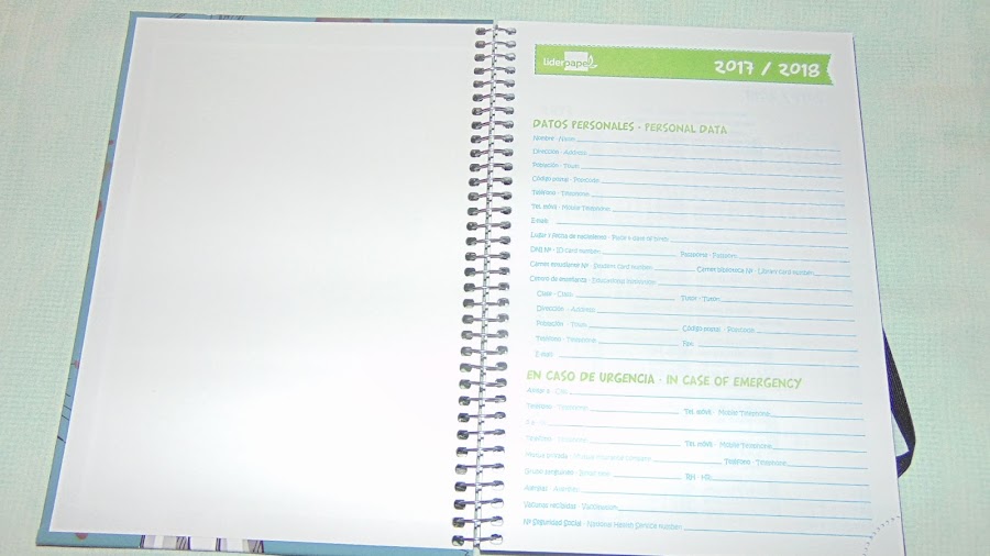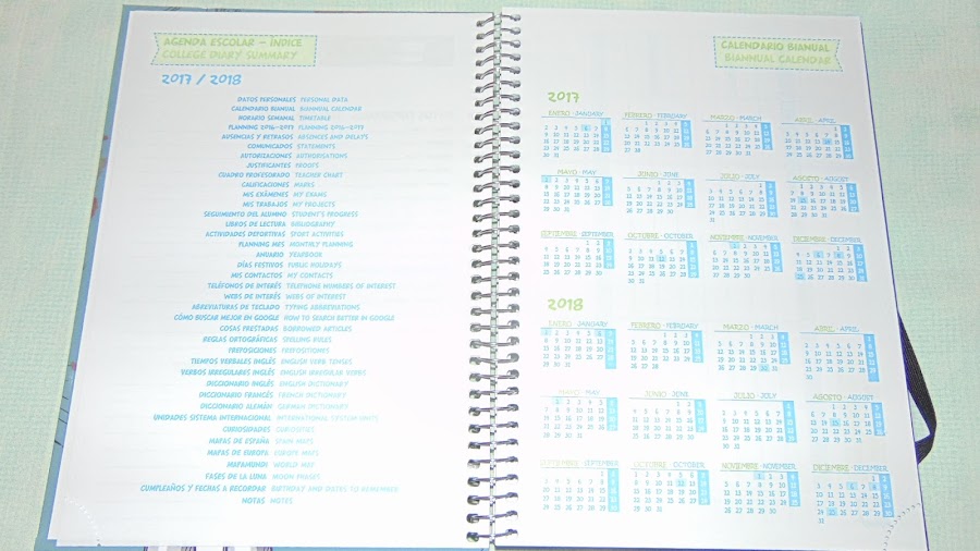 Como cada año y sobre todo para organizarme como blogger necesito una agenda para programar los post que quiero hacer mensualmente, si tengo algún evento o reunión, emails de contacto y teléfonos, los cumpleaños de mi gente, los sorteos que os traigo y demás; por lo que es un básico para mí. Elegí esta agenda 2017-2018 modelo Travel así lo llamo yo porque todos sus modelos son de temática viajera, es bilingüe por lo que viene fenomenal para repasar conceptos básicos en inglés que a veces me hacen falta a la hora de hablar con marcas, de tamaño A5, con espiral, cierre con goma, marca Liderpapel y tiene un precio de 5,89 Iva incluido. Él único punto a tener en cuenta es que no se puede elegir modelo se mandan al azar por eso os recomiendo que elijáis un modelo que os gusten todos sus diseños para no tener sorpresas. Además viene con un regalito extra una regla elástica acoplada.