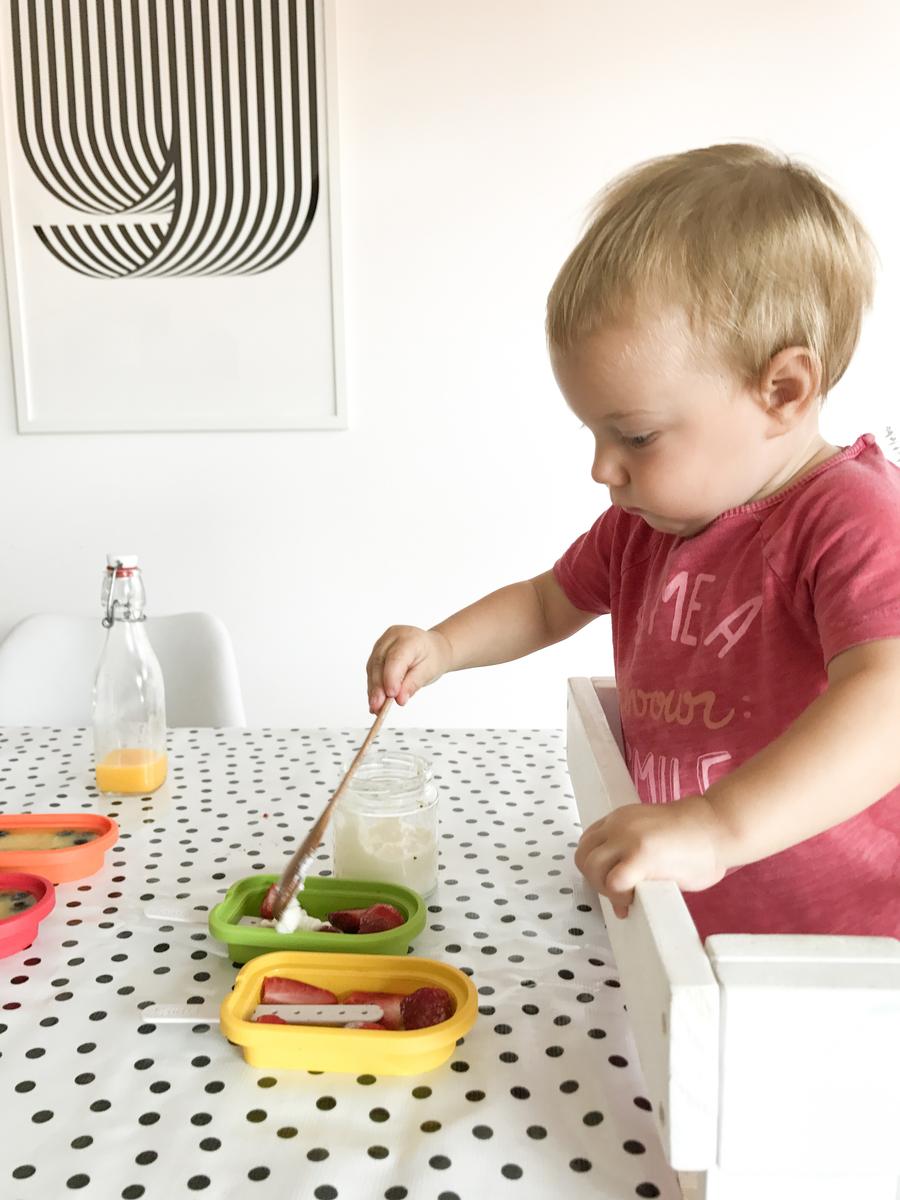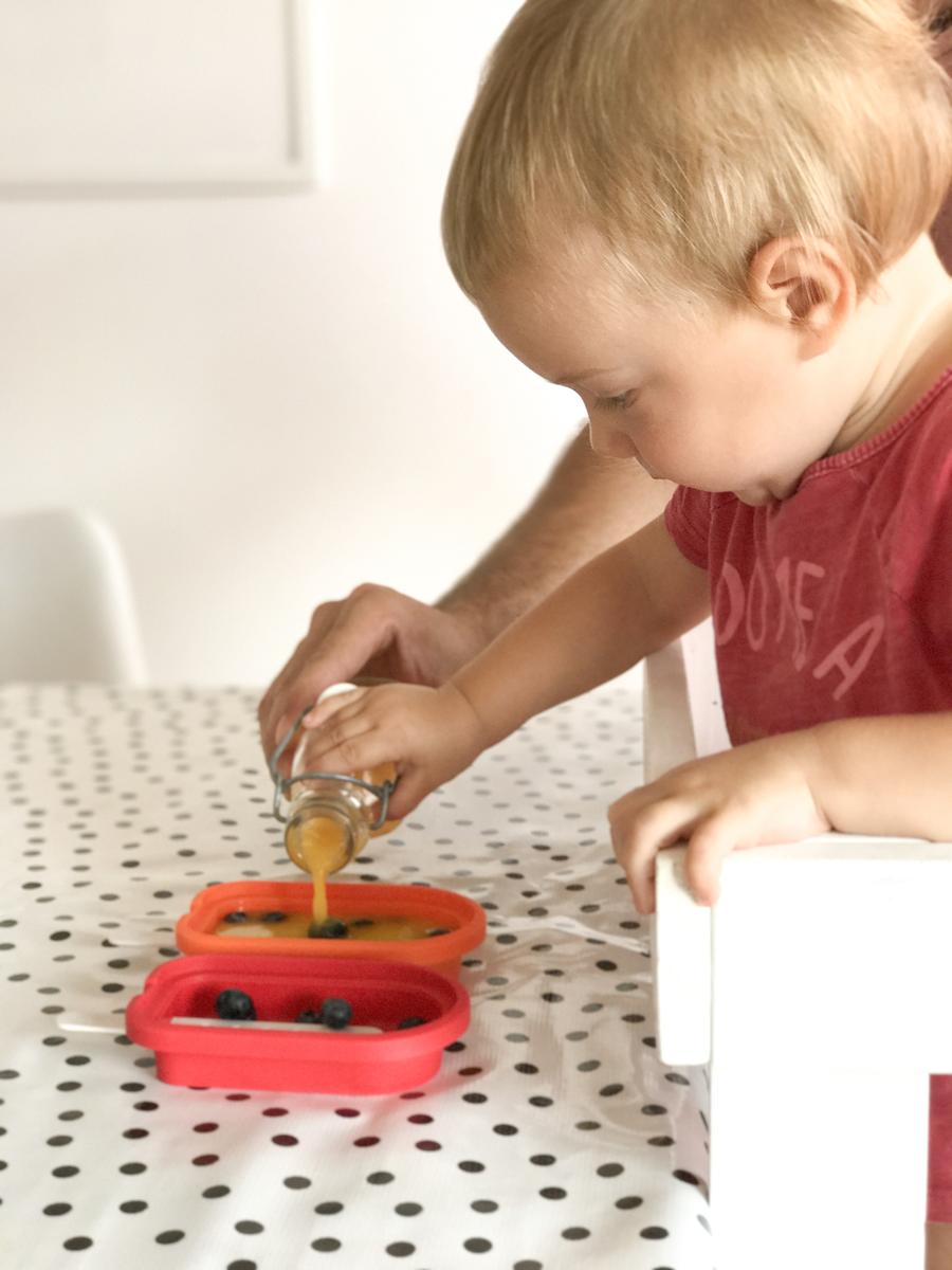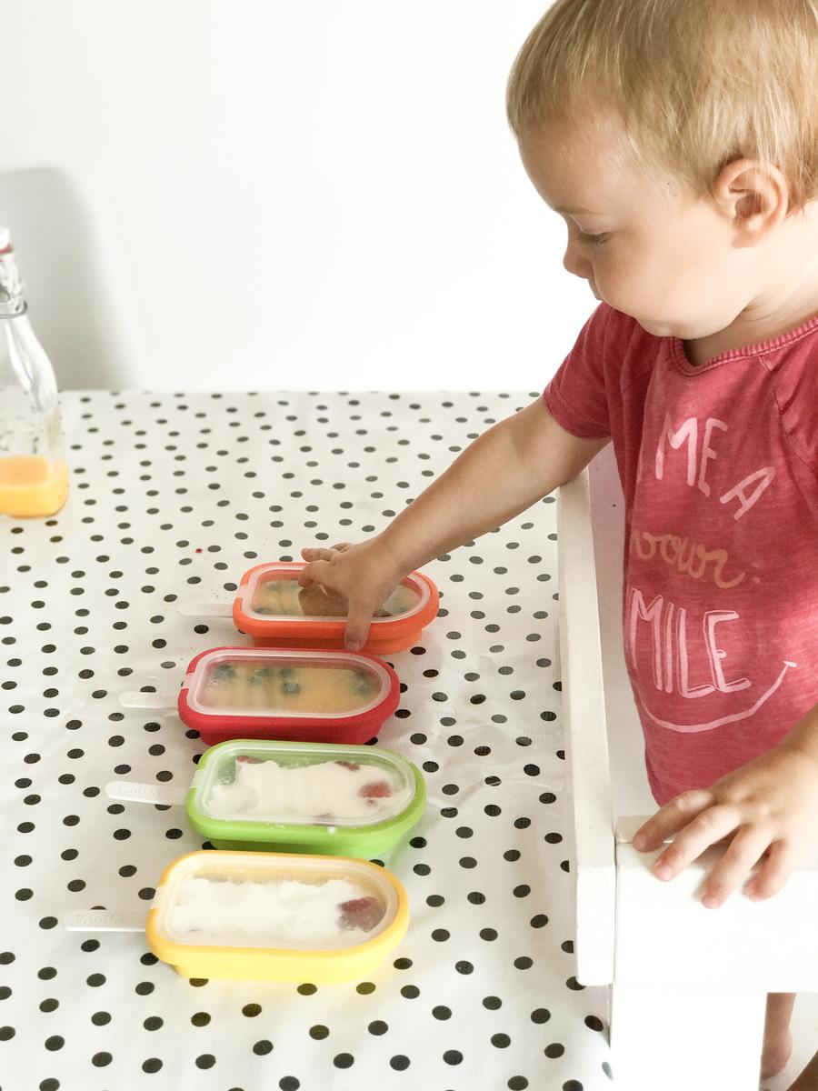De todos los moldes para helados que he usado, estos han sido los que mejor resultado me han dado hasta el momento. Básicamente porque son muy fáciles de desmontar, el helado nunca se rompe. Son de silicona por lo que se lavan genial, y por último y más importante: el palo es regulable por lo que podemos dejar bastante trozo libre para que puedan sujetarlo ellos solos sin necesidad de que el adulto les tenga que ayudar a comer. Por lo tanto, fomenta la autonomía y la regulación del niño.