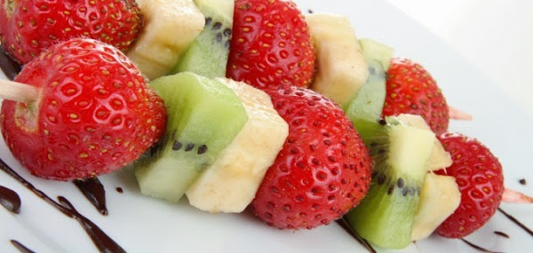 Estoy pensando una buena opción seria hacer pinchos de frutas, un poco de sandia, fresa, naranja, kiwi, pera,?. Las combinaciones son amplias, una buena opción, sabroso, refrescante, sano?. Que ganas.