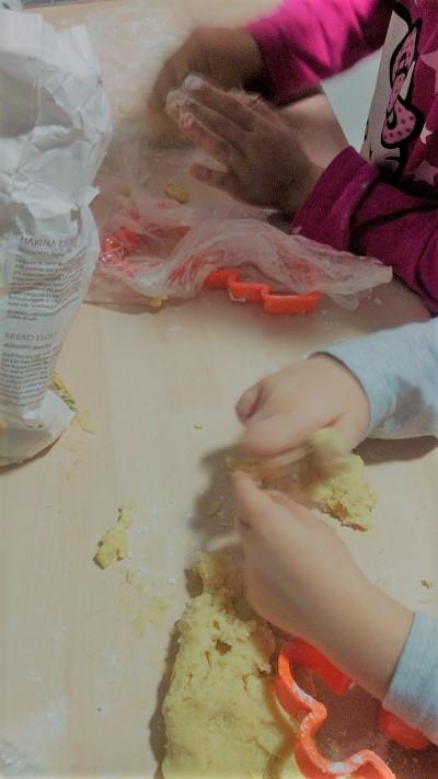 Pasado este tiempo cortamos las figuritas con los cortapastas y las horneamos a 180º hasta que comiencen a estar doradas por las esquinas.