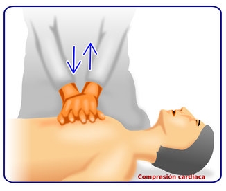 Pide ayuda, llama al 112 o pide a alguien que lo haga e inicia 30 compresiones torácicas en el centro del pecho.La compresiones deben ser rítmicas a unas 100 compresiones por minutos, o lo que es lo mismo, siguiendo el ritmo de Staying Alive de los Bee Gees. Se coloca el talón de la mano sobre el esternón y la otra mano encima entrelazando los dedos. Con los brazo extendidos se deja caer el peso de tu cuerpo para comprimir el tórax unos 4-5 cm. Tras 30 compresiones torácicas se realizaran 2 insuflaciones. Si te da reparo, no lo hagas, pero ¡no dejes de comprimir!