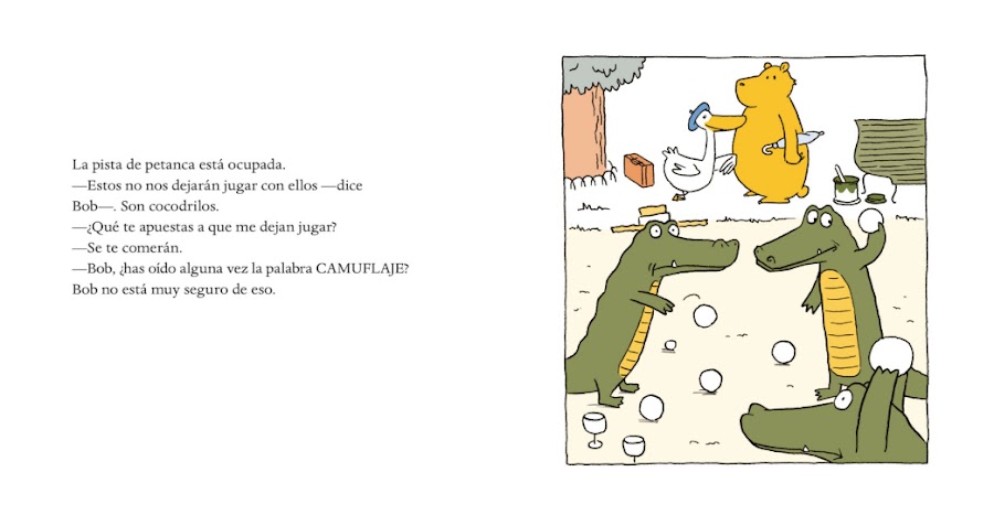 En una de ellas a Lester se le ocurre pintarse de verde para simular que es un cocodrilo, y poder jugar con ellos una partida de su deporte favorito, te recuerdo que es un pato. Te podrás imaginar lo que ocurre cuando empieza a desvelarse que de cocodrilo no tiene nada de nada.