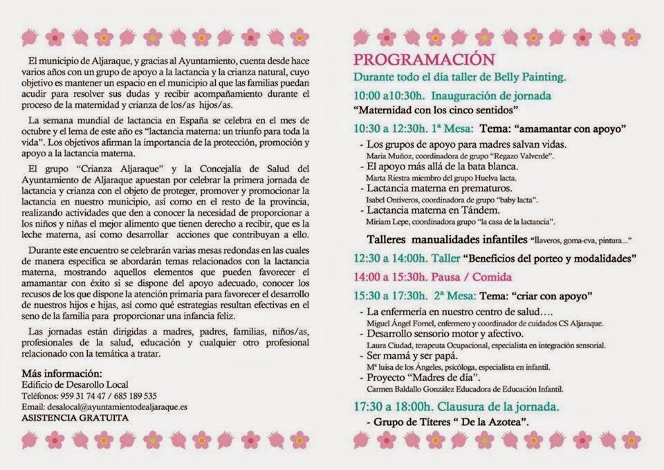 Así que si sois de Huelva capital o provincia, sois padres recientes, vais a serlo, y estáis interesados en estos aspectos de la crianza, os invito a que acudáis por que sin duda será una jornada muy amena.