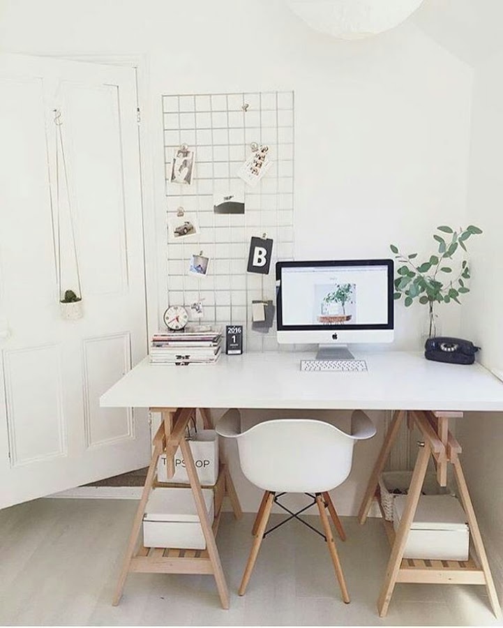 Tengo una ventaja, mi suegro es un crak de la soldadura y me puede hacer el escritorio a mi gusto (está esperando que me decida) La verdad es que quiero algo muy sencillo y limpio, con algún espacio visual que me sirva de inspiración, donde colocar mis cosas, mis fotos favoritas y poder sentarme a revisar y enviar correos, editar un poco, planificar la semana y escribir en el blog.